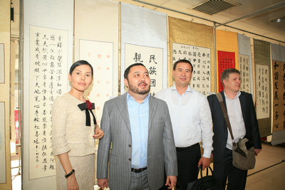 7月27日下午,哈萨克斯坦国际友人布拉特一行四人来新疆建工洽谈业务,在结束工作后恰逢画展刚刚布置起来,他们兴致勃勃地置身书画世界,欣赏了员工书画摄影作品。并啧啧称赞:“中国中建新疆建工企业文化丰富多彩,员工能写会画,真是多才多艺,贾克斯、贾克斯!(好、好)”