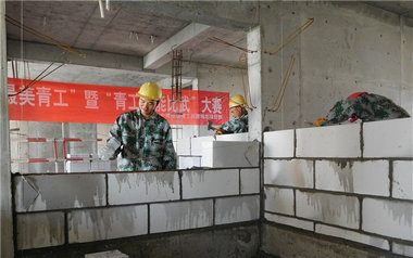 “五一”劳动节来临之际,4月24日,五建城北项目部为期3天的第一届寻找“最美青工”暨青工“技能比武”大赛落下帷幕,大赛旨在搭建提升技能素质的平台,展示项目员工和劳务工的风采。  本次大赛有60余人参加,竞赛内容分为放线、经纬仪使用、绘制CAD图、横道图、钢筋绑扎、蒸压加气块砌筑6项。经过3天的激烈角逐,最终3名岗位能手和3个团体受到通报表彰。
