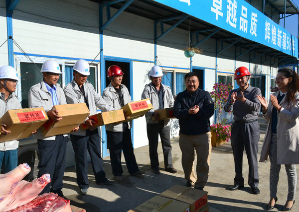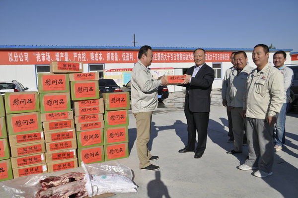 佳节来临,情浓人间。9月18日,在中秋、国庆双节来临之际,中建股份助理总经理、中建新疆建工董事长、党委书记郜烈阳,党委副书记、总经理徐建林等领导分别来到集团全资子公司、各控股公司西部建设、安装公司、新疆中建地产等单位,看望慰问了坚守岗位的员工及农民工,把节日的问候与关怀送到了一线。同时,集团还向远在千里之外的北京分公司、四川分公司、陕西分公司发出慰问信,邮去慰问金,表达出企业对远方身在异乡仍坚守岗位的员工、农民工的节日祝福。 郜烈阳在中建股份乌市高铁北广场项目指挥部、中建三局、六局、新疆建工四建参建的高铁建设片区北广场配套设施项目部施工段一线,认真听取了项目施工进展情况汇报,关切询问了一线员工、农民工的生产生活情况,鼓励企业全体员工、农民工要迎难而上,再接再厉地做好施工,为中建品牌争光添彩,并把慰问品送到他们的手中,祝愿他们过一个祥和快乐的节日。 徐建林在一建波斯坦花园施工项目部听取了项目部自开工以来的施工进度、质量安全、资金状况、员工文化生活等情况汇报,并实地查看了项目施工情况。对项目部广大干部员工在中秋节来临之际,仍然坚持在施工一线,表示衷心的感谢,提前预祝大家中秋节快乐,并送上节日慰问品,随后与施工一线员工合影留念。 集团领导李建明、艾力肯·依布拉音、段连吉、徐春林、李桂江、刘利辉分别来到二建师大施工项目部、建科院二分院、三建设和兴雅郡施工项目部及新疆中建地产本部、西部建设经济技术开发区搅拌站、红雁建材加砌块厂、安装公司新厂区看望慰问了那里的员工和农民工并送上慰问品,代表企业把节日祝福送到了施工一线。