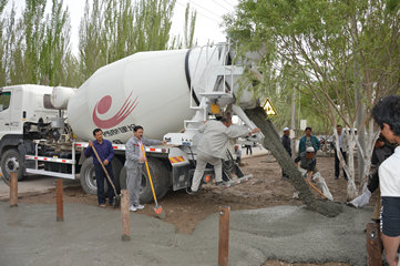 415日中午,墩克什拉克村委会门口机器的轰鸣声打破了村里的宁静。集团住村工作二组协调西部建设新疆区域总部为村委会门口的路面硬化,三辆混凝土搅拌车停在村委会门口,车旁围满了驻足观望村民。