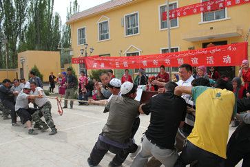 5月4日下午,在坎特艾日克村委会大院里,不时传出阵阵欢呼和加油的呐喊声……这是集团住村工作一组为庆祝“五四”青年节组织的青年联谊活动。