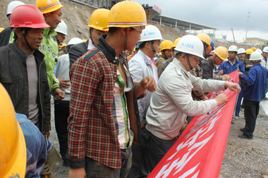 中国建筑在乌鲁木齐高铁项目开展“安全生产月”签名活动