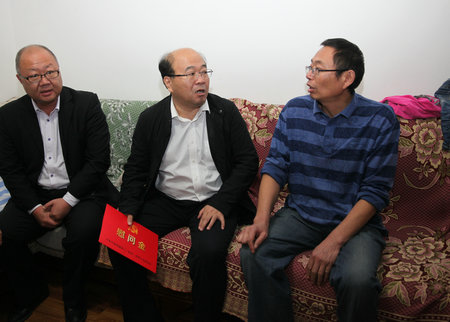 夜幕降临,徐爱杰冒雨赶到一建困难职工吾尼切木·居马家中,送上慰问金后,关切询问了他们家庭生活及孩子上学情况,当听说吾尼切木·居马身患重病,收入微薄、生活困难时,他要求一建要做好保障工作。同时鼓励吾尼切木·居马要树立战胜病魔的信心,只要有了信心,保持良好的心态,就一定能够克服各种困难。