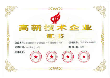 10月30日,新疆建筑科学研究院捧回了“高新技术企业证书”,该证书是由自治区科学技术厅、财政厅、国家税务总局、地方税务局联合批准的。