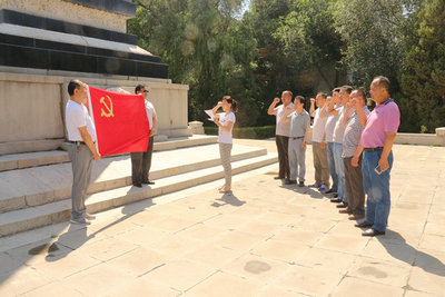 6月30日下午,四建总部党总支第三党支部与联建单位钱塘世家项目部、今年新发展党员共11名党员在乌鲁木齐市人民公园庄严肃穆的人民英雄纪念碑前,举起右拳向党旗庄严宣誓庄重承诺。