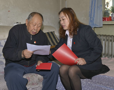 五建离退休党支部在送学习材料的同时,将集团学习传达贯彻十九大专题视频会议精神宣讲给老同志,离退休人员通过学习十九大精神了解集团今后的发展方向。今年88岁高龄老党员、自治区劳动模范杨德品说:“我是一名老党员,我要好好学习十九大精神,感谢党对我们老同志的关怀。”