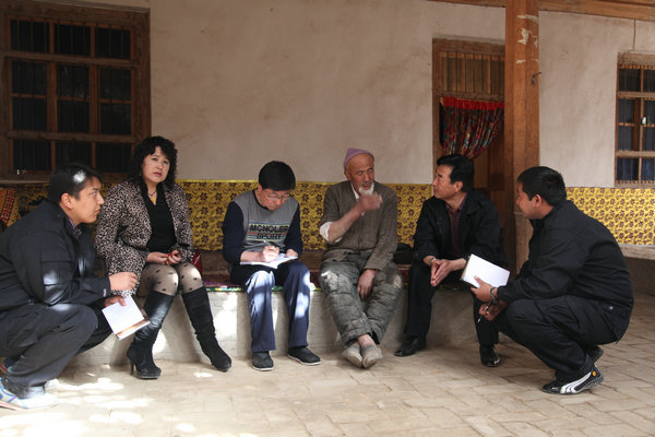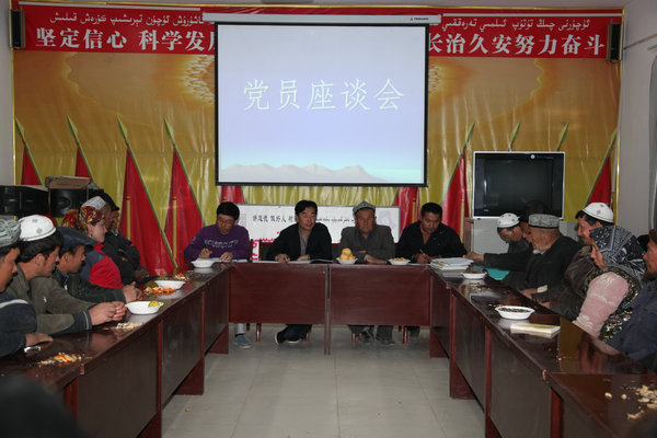 为进一步贴近群众,汇集民意,住村工作组利用村民农闲时间,组织召开村全体党员座谈会,向全体党员干部传达贯彻自治区党委开展“访民情惠民生聚民心”活动和喀什地委两项工作任务等相关文件精神,组织广大党员干部展开讨论,认真听取党员干部意见和建议,及时了解和掌握群众最关心、最直接、最现实问题;召开村“两委”干部座谈会,听取村“两委”班子对春耕生产和村集体经济发展的思路、方法,找准为村民扶贫帮困、致富增收的着眼点和着力点。