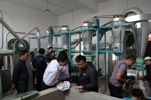 5月19日,集团总经理、党委副书记徐建林,集团副总经理聂亚民一行前往坎特艾日克村看望集团住村工作组成员,并为集团援建的面粉加工厂开机磨面庆贺。