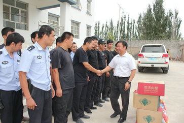 近日,在中国人民解放军“八一”建军节到来之际,集团住村工作组来到喀什地区英吉沙县英也尔乡派出所看望慰问了全体公安民警,并送上慰问信和节日慰问品。