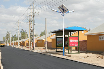 一条近3公里长的柏油路9月20日将横穿于坎特艾日克村民门前,同时配有崭新的公交车站站台,太阳能路灯夜间照明,从此极大改善村民的出行条件,生活在这里的村民再也不会走在坎坷不平、尘土飞扬的简易路上了。