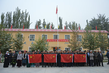 10月1日清晨,集团住墩克什拉克村工作组和村委会干部、党员、村民一起开展了“我与国旗合个影、我为大庆送祝福”活动,共同庆祝中华人民共和国成立66周年和自治区成立60周年。