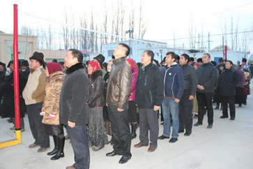 2016年1月3日,新年伊始,集团纪委书记、第三批住村工作总领队兼一组组长李建林,副组长王景山到达喀什地区英吉沙县英也尔乡坎特艾日克村,与第二批住村工作组进行工作对接,与村干部、村民一起参加了升旗仪式。