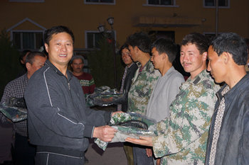 坎特艾日克村村干部、村民兵在巡逻时穿着五花八门,很不规范,集团工作组出资7000多元购买了70多套迷彩服发放给大家。