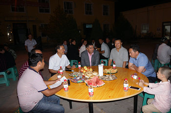 晚上22:30时,皎洁的月光洒在村委会院内,随着欢快的音乐,青少年、妇女、四老人员等村民代表与住村工作组成员、乡党委、政府领导围成一桌一同品尝集团工作组准备的各式各样的水果、月饼和手抓羊肉,观赏中秋圆月,共品中华文化。