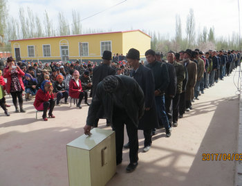 一位村民大妈说:“我们坚决支持工作队组织的这次捐款活动,工作队亚克西!村干部亚克西!”