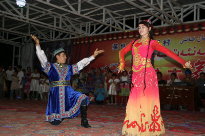 明亮的LED灯光和声控球形彩色旋转灯映衬着整个舞台,伴随着音乐响起,男女老少翩翩起舞,一展歌喉,村民艾尔肯·阿卜杜热依木说:“太好了,过去只在电影电视看到的场景,今天在村里看到了。”身穿民族服饰67岁民间艺人卡斯木·达吾提说:“谢谢工作队,我们的生活越来越亮堂。”
