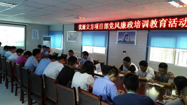 为深化党风廉政宣传教育,四川分公司在各项目认真开展廉政专题学习、廉洁文化“四进”、集体廉政谈话、廉洁文化示范点创建等系列活动,对各项目基层党员干部进行了一次深刻的党性党风、党纪法规和廉洁从业教育。同时针对公司青年员工占较大的比例,在宣传教育中,对全体青年员工提出了具体要求,就是在思想上画出红线,在行动上明确界限,严以修身、严以律己,走好人生每一步。