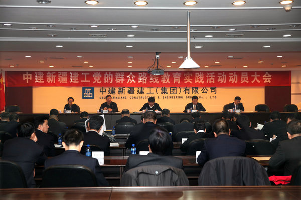 3月14日,作为中国建筑第二批党的群众路线教育实践活动的单位,新疆建工召开动员大会,中建股份公司副总裁邵继江发表重要讲话,中建总公司第二批活动督导第三督导组组长董勤顺作启动讲话,中建股份助理总经理、集团董事长、党委书记郜烈阳作动员讲话,会议由集团总经理、党委副书记徐建林主持。