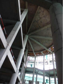 近日,随着最后几块角模的拆卸完毕,由四分公司承建的新疆维吾尔自治区图书馆主馆弧形阅览区主体封顶。