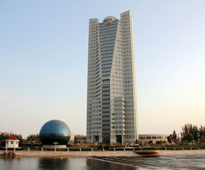 中建新疆建工三建设施工的塔里木油田分公司勘探开发综合楼。该工程是中石油系统重点建设项目,工程主楼高34层142.9米、裙楼2层、附楼2层、地下车库2层,总建筑面积达6万余平方米,该工程不仅是库尔勒市和塔里木油田分公司基地建设的标志性建筑,而且以其在库尔勒及南疆地区高层建筑史最大、最高、结构最复杂,科技施工含量最高,被住房和城乡建设部列为第五批全国建筑业新技术应用示范工程,并被誉为“南疆第一楼”。