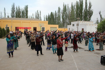 同时组织教授现代舞,每天吃过晚饭,村民们就会聚到村委会大院里,在村干部的带领下学跳现代流行舞蹈“小苹果”。在欢快的音乐伴奏下,不分年龄、不分老幼,虽然村民舞姿不算标准,动作也不算整齐,但是大家都兴致勃勃,活跃了气氛、增进了团结。