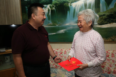 集团总经理、党委副书记徐建林在抗战离休老干部吴宪君遗孀李婉华家中进行慰问活动。