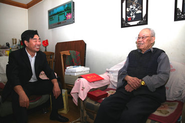 领导们来到抗战离休老干部和遗孀家中,详细询问了他们的生活状况和身体情况,为他们送上了慰问金,并把“抗日战争胜利70周年纪念章”送到了离休老干部手中。