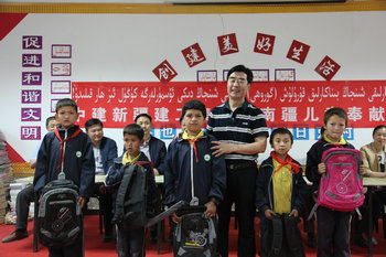5月24日,集团党委常委、工会主席段连吉一行带着集团全体员工捐款募集的爱心资金为坎特艾日克村儿童购买了书包、学习用具,给孩子们过一个欢乐的六一儿童节。