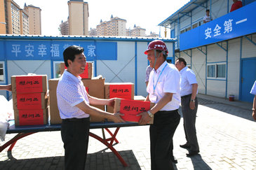 一建神华怡园项目部四川广元籍农民工张家勇感慨地说,每逢佳节倍思亲。企业和领导过节没有忘记我们,给我们送来节日的问候和祝福,温暖着每个奋战在一线的施工人员,我们一定会再接再厉干好工程,以良好的业绩回报企业。