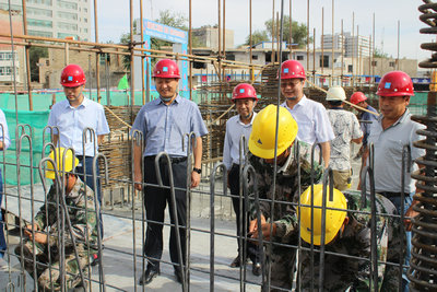 随后,李建林一行送上慰问品,查看了职工宿舍,到施工现场了解他们学习绑扎钢筋情况。