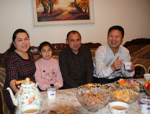 李建林和吾买尔·司马义一家人一起共进晚餐,亲切交谈,吾买尔·司马义的女儿为亲人们现场弹了奏了一首钢琴曲,赢得了李建林的交口称赞,大家其乐融融,欢声笑语不断,彼此间像一家人一样,民族团结的氛围洋溢在每个人的心里。