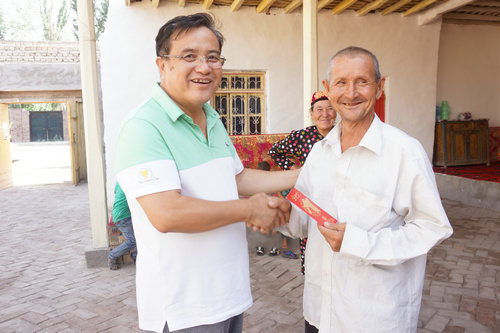 8月23日,中建集团党组成员、纪检组组长周辉在集团党委副书记、纪委书记、工会主席李建林的陪同下,来到喀什地区英吉沙县英也尔乡荒地村,看望慰问了集团驻英吉沙县英也尔乡和依格孜牙乡的4个工作队、8个扶贫第一书记和全体队员,把中建集团党组对新疆建工“访惠聚”驻村工作队员的关心和关怀带到千里之外的南疆。 集团副总经理、驻英吉沙县“访惠聚”工作队总领队臧旭辉代表工作队和扶贫第一书记就今年以来在维护社会稳定、推进脱贫攻坚、做好群众工作、基层组织建设等工作作了汇报,4个工作队队长、8个扶贫第一书记结合各自工作体会,对当前正在开展的脱贫攻坚工作中遇到的困难和问题提出了意见和建议。 听完汇报后,周辉心怀感慨:“你们放弃大城市的优越生活,牺牲家庭幸福生活,舍小家为国家,克服了很多实际困难,承担了很大压力。你们为国家承担政治责任,这是对党和国家忠诚的具体体现,你们是中建的骄傲!是中建的好干部!我代表中建集团24万员工感谢你们!” 周辉组长在谈到脱贫攻坚工作时说:“脱贫攻坚是党中央赋予央企的政治责任,在脱贫攻坚工作中,大家要发扬中建人的优良传统,一定要在精准上下功夫。各工作队、各扶贫第一书记要结合实际,一村一规划、一户一策,拿出切实可行的规划,既要考虑当前,也要谋划长远。要集中全集团之力,坚决打赢这场脱贫攻坚战。” 周辉还走访了集团在英吉沙县派驻的12个村,慰问了英也尔乡荒地村贫困户艾再木夏·艾海提一家人,祝他们全家古尔邦节快乐。鼓励他们要靠自己的双手走上富裕路。今天的好生活要感谢共产党,感谢伟大的祖国。艾再木夏·艾海提翘起大拇指感动地说:“共产党亚克西!我们全家人一定要感恩党、听党话、跟党走。”