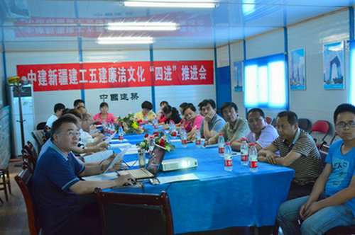6月11,五建项目部召开廉洁文化“四进”推进会,各单位党支部书记争相学习廉洁文化示范点实施过程的资料,同时观看讨论了2013年五建云鼎大观项目的廉洁文化示范点的工作过程和工作特点,相互交流,总结经验,共同推进。
