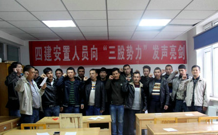 9月24日下午,四建转移安置办公室组织喀什、和田的维吾尔族员工开展向“三股势力”发声亮剑活动。